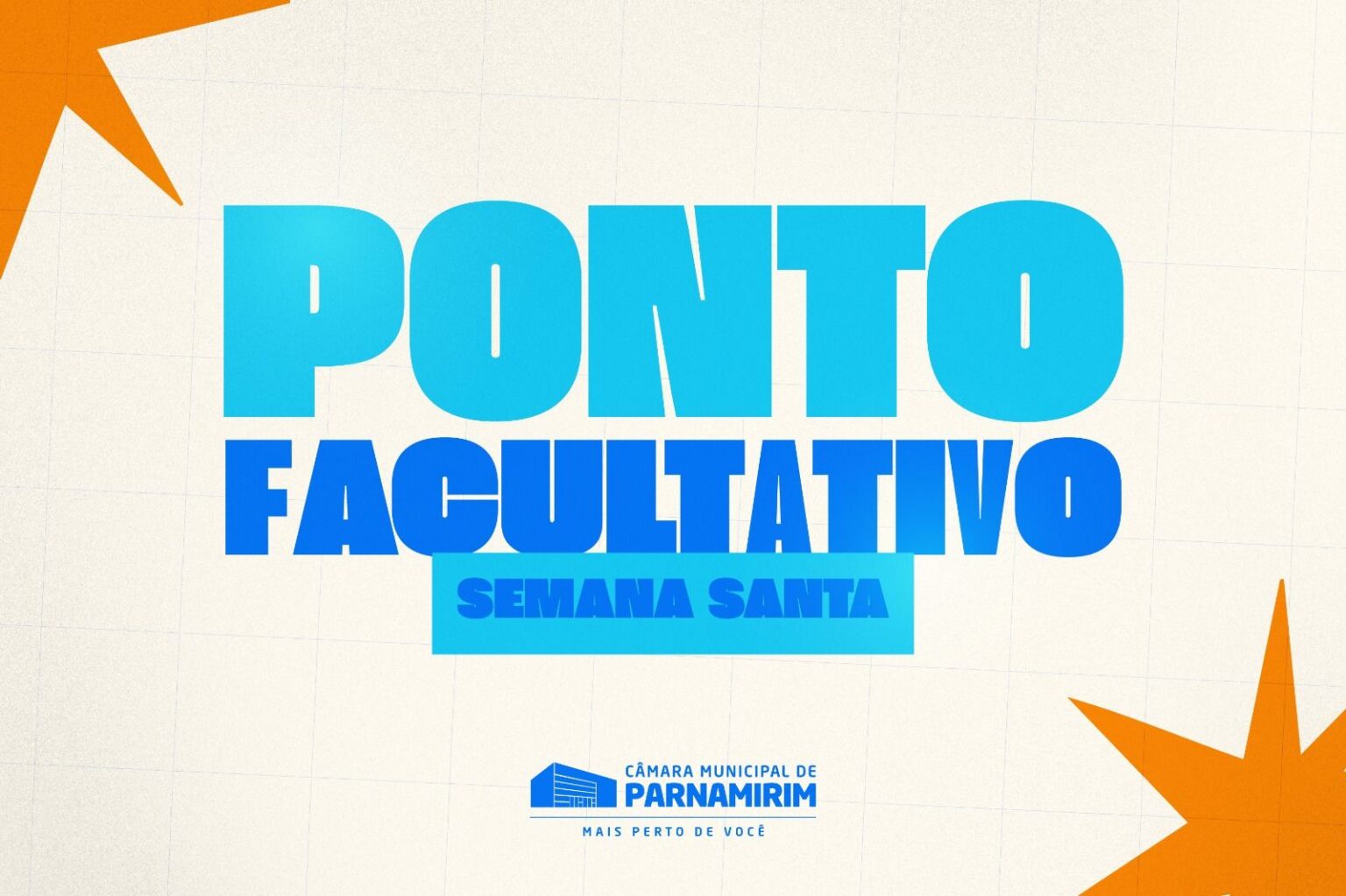 A Câmara Municipal de Parnamirim informa que não haverá expediente nesta quinta-feira, 2 de abril, em razão do ponto facultativo decretado pelo município durante o período da Semana Santa. A medida segue o calendário oficial da administração pública municipal. Com isso, as atividades legislativas e administrativas da Casa estarão suspensas na data e na sexta-feira, 3.