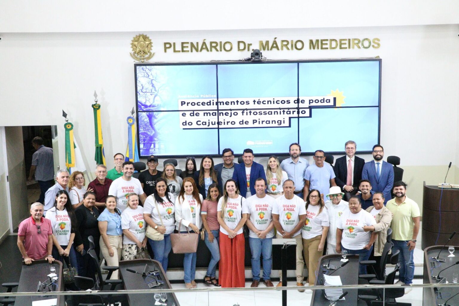 Nesta terça-feira (08/07), foi realizada no plenário da Câmara Municipal de Parnamirim uma audiência pública para debater a necessidade de poda e manejo fitossanitário do Cajueiro de Pirangi. A audiência reuniu vereadores, representantes do Instituto de Desenvolvimento Sustentável e Meio Ambiente do Rio Grande do Norte (IDEMA) e da sociedade civil. Após um vídeo inicial sobre